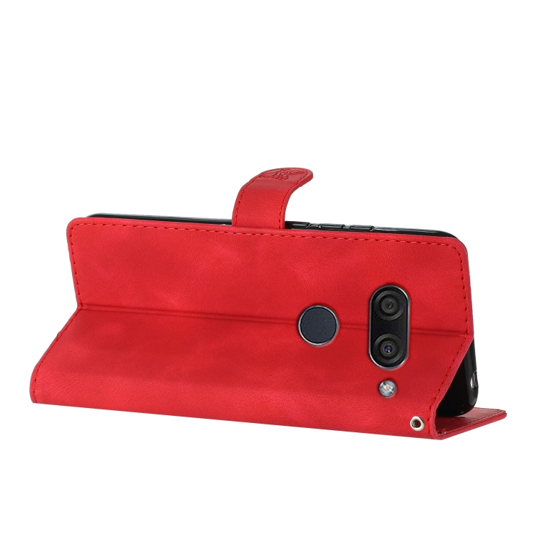 Funda de Cuero para LG K50 / Q60 con Estampado de Mariposas y Flores (Rojo)