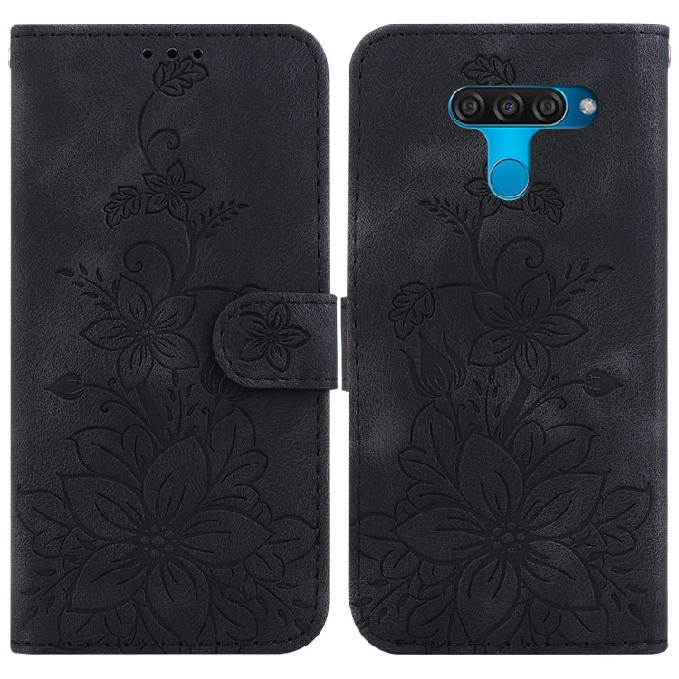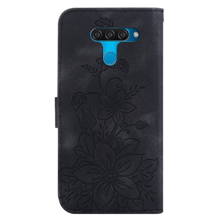 Funda de Teléfono LG K50 Q60 Cuero con Relieve Lily (Negro)
