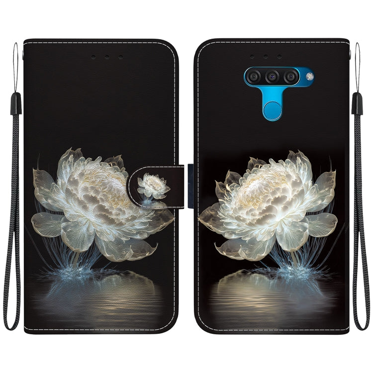 Funda para Teléfono LG K50 / Q60 de Cuero con Dibujo Coloreado y Textura de Cristal (Peonía)