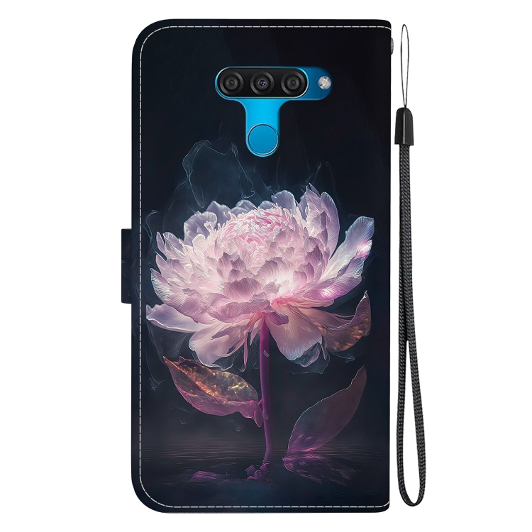 Funda para LG K50 / Q60 de Cuero con Dibujo Coloreado y Textura de Cristal (Peonía Púrpura)
