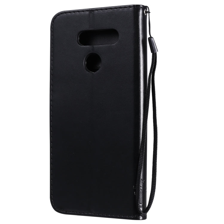 Funda de Cuero para LG K50S con Tapa Horizontal, Patrón Árbol y Gato, Soporte, Ranuras para Tarjetas y Cordón (Negro)