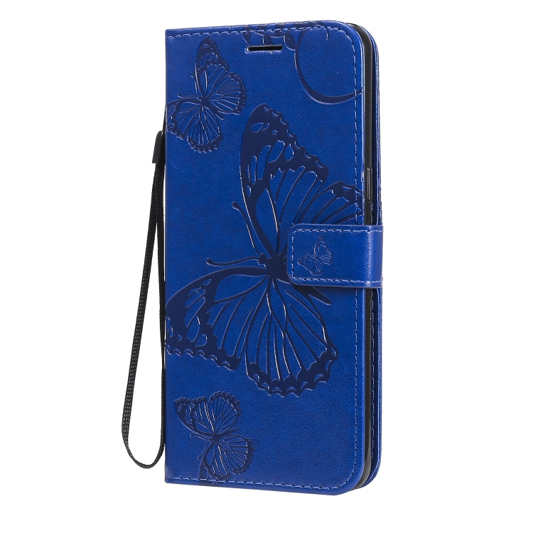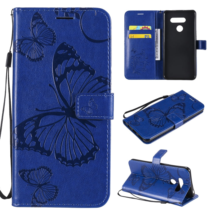 Funda de Cuero para LG K50S con Tapa Horizontal, Patrón Mariposa 3D, Soporte, Ranura Tarjeta, Billetera y Cordón (Azul)