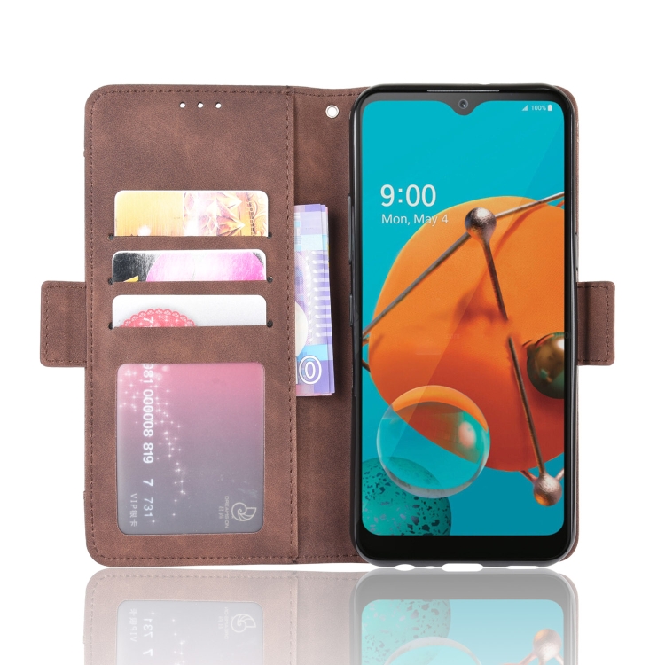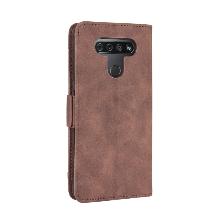 Estuche de Cuero para LG K51 con Patrón de Piel de Becerro y Ranura para Tarjeta (Marrón)