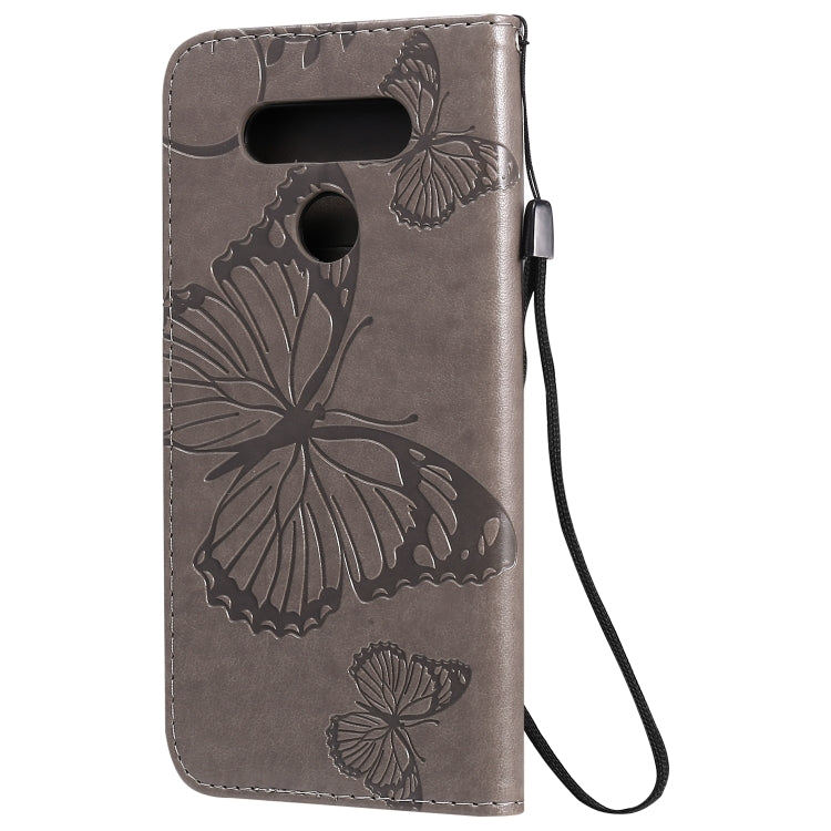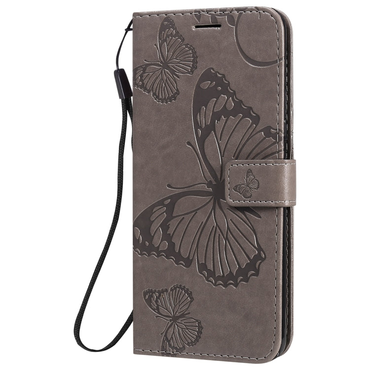 Estuche de Cuero para LG K51 con Tapa Horizontal, Patrón Mariposa 3D, Soporte, Ranura para Tarjeta, Billetera y Cordón (Gris)