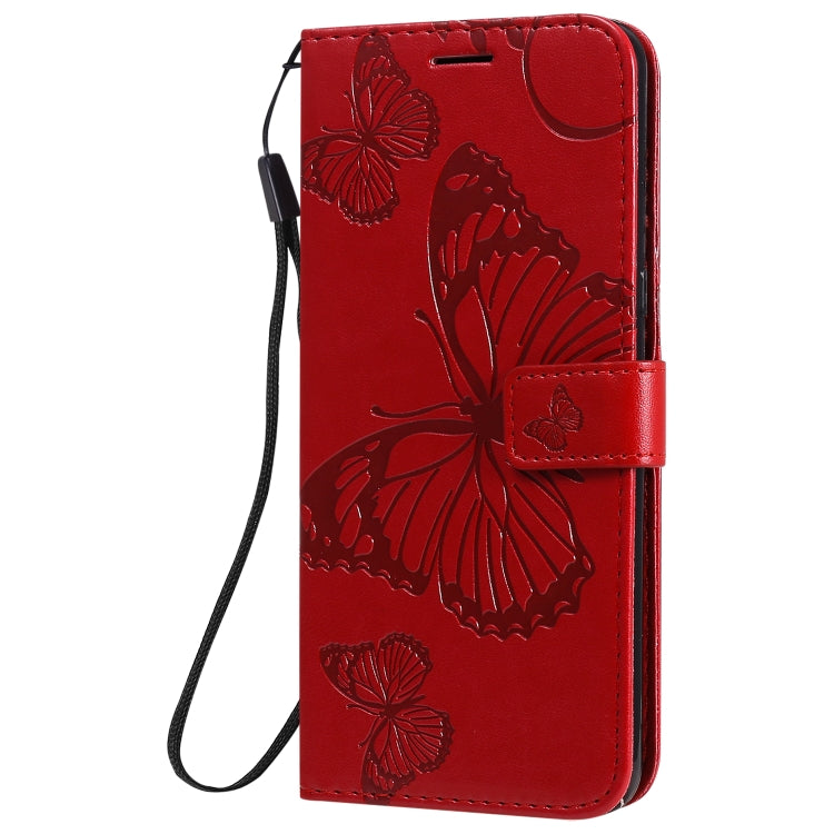 Funda de Cuero para LG K51 con Tapa Horizontal, Patrón Mariposa 3D, Soporte, Ranura para Tarjeta, Billetera y Cordón (Rojo)
