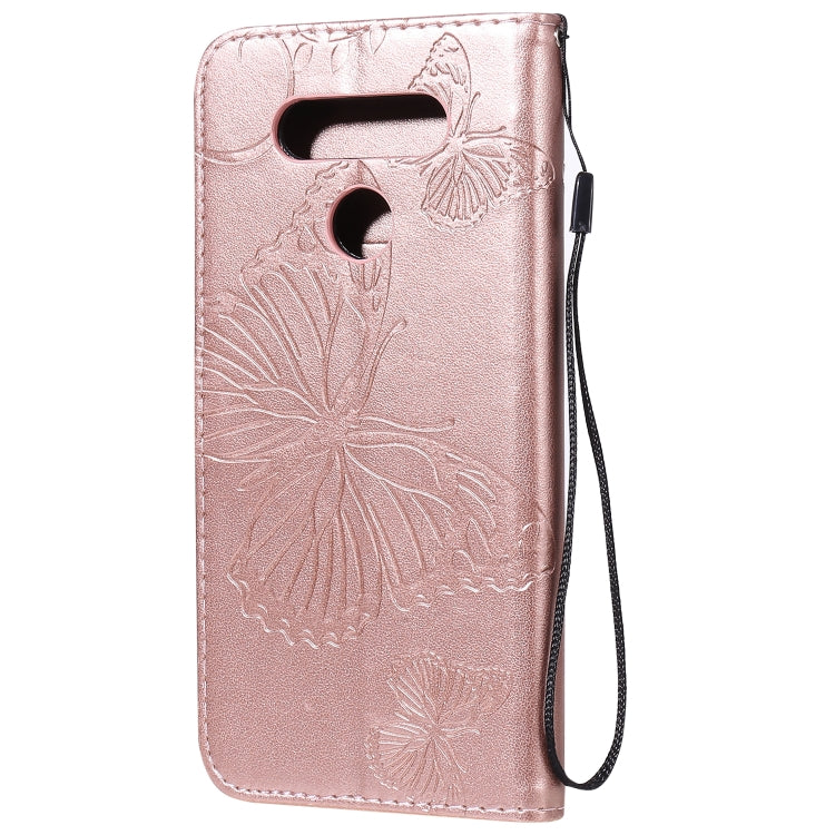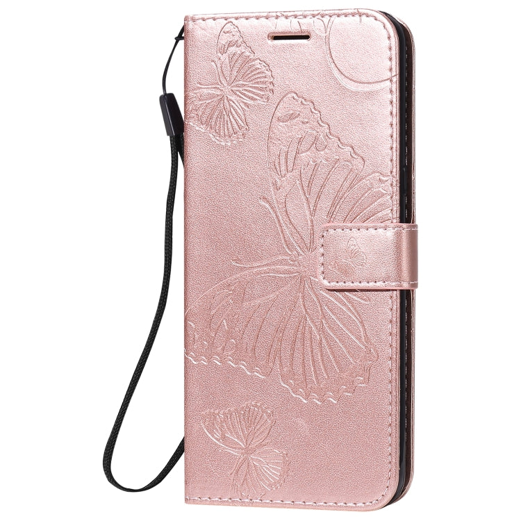 Funda de Cuero para LG K51 con Tapa Horizontal, Patrón Mariposa 3D, Soporte, Ranura para Tarjeta y Cordón (Oro Rosa)