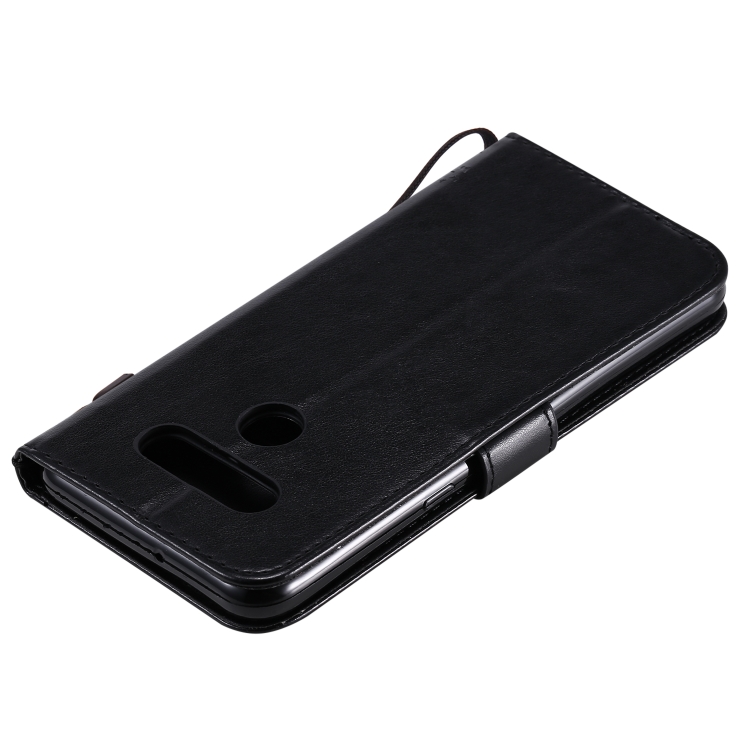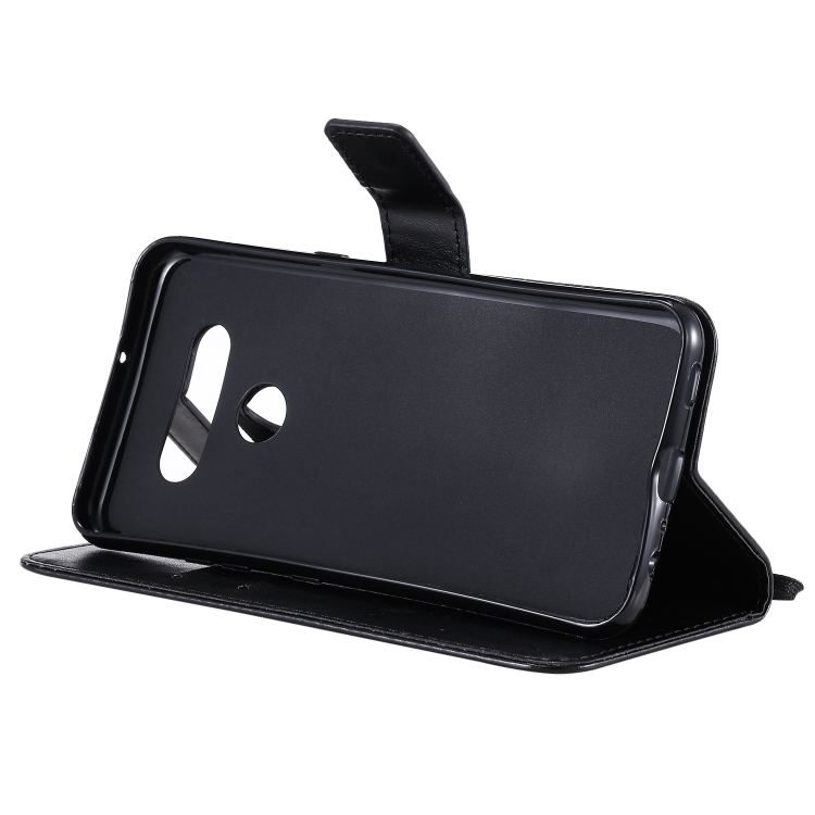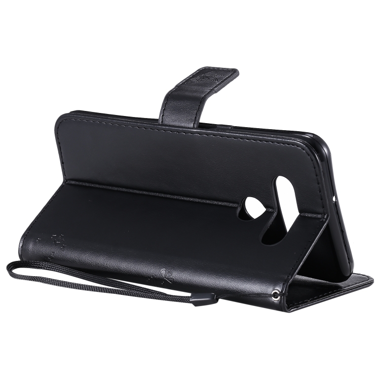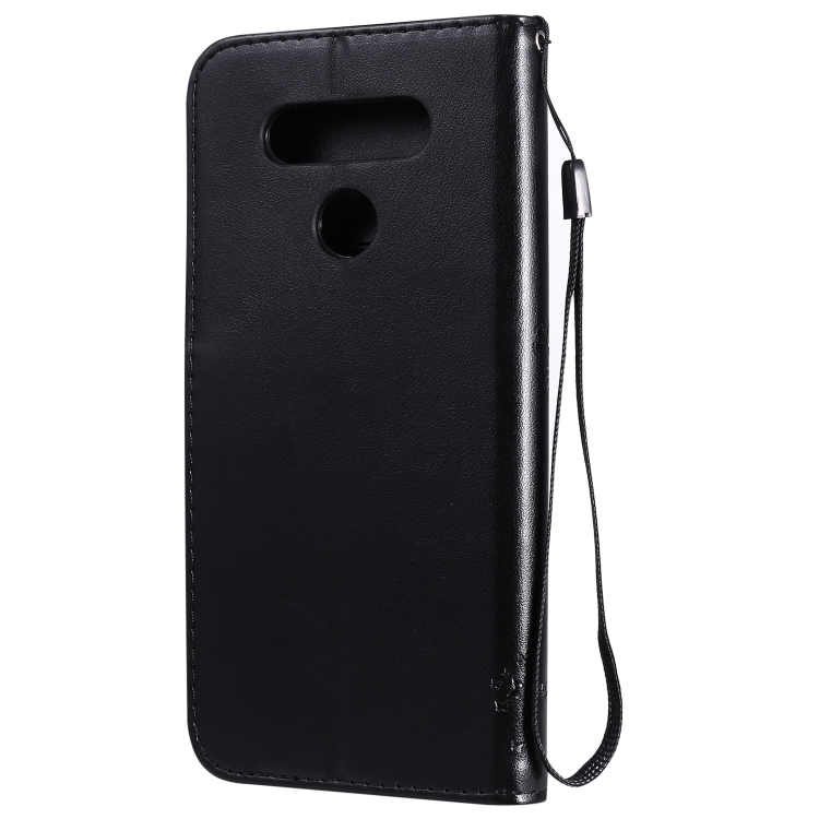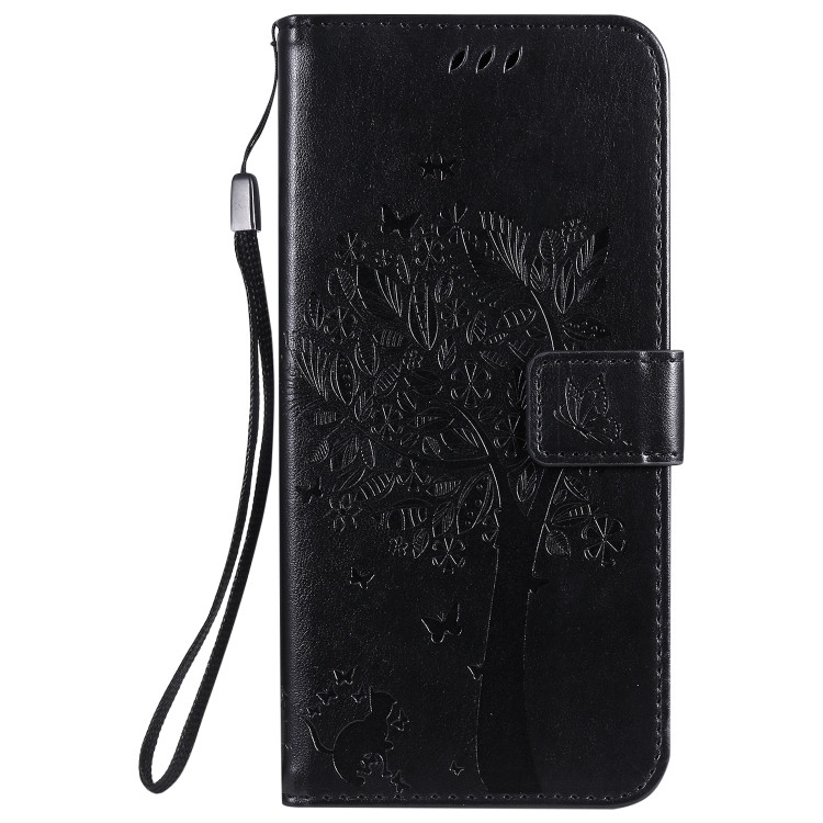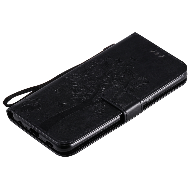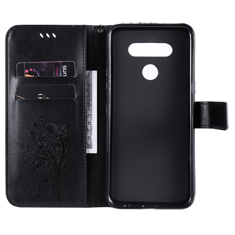 Funda de Cuero para LG K51 Tree & CAT con Tapa Horizontal, Soporte, Ranuras para Tarjetas y Cordón (Negro)
