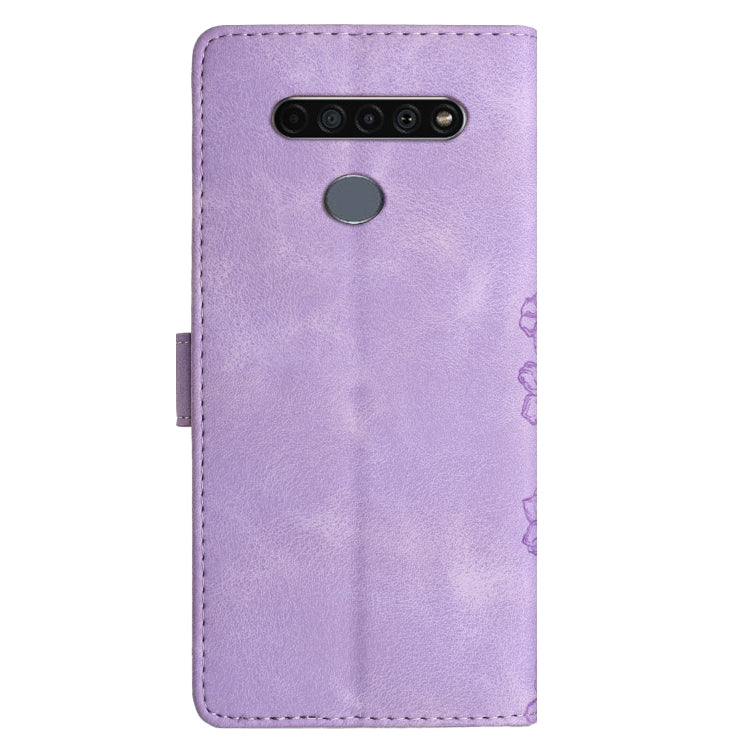 Funda para LG K51S Cherry Blossom Butterfly Skin Feel PU En Relieve (Púrpura)