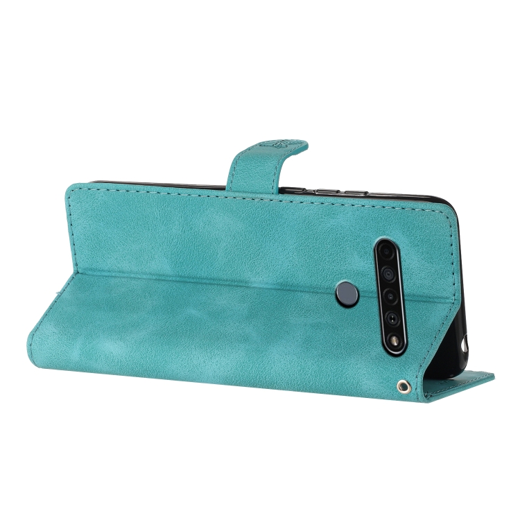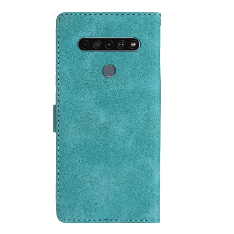 Funda de Cuero para LG K51S con Flor Mariposa y Relieve Patrón (Azul Cielo)