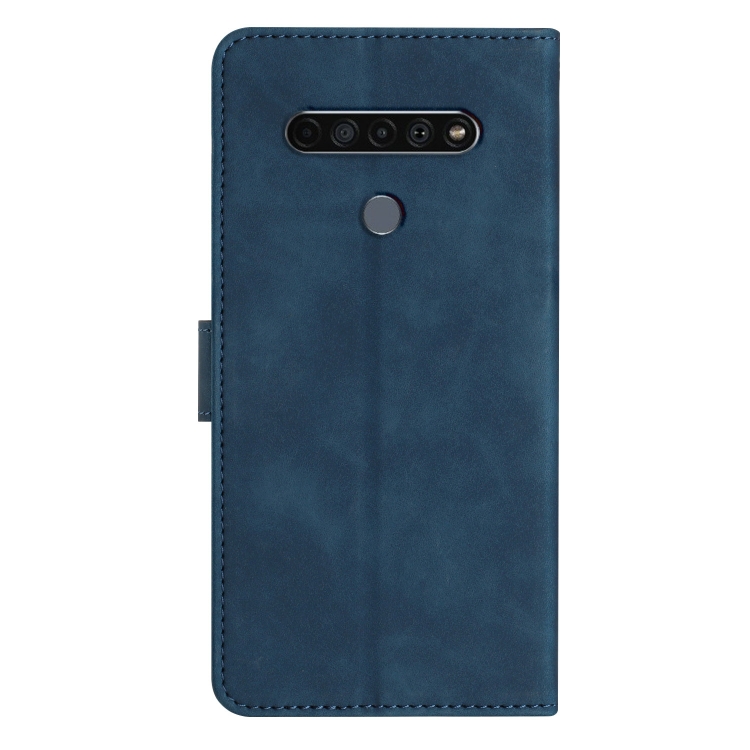 Funda de Cuero para LG K51S Seven Butterflies con Relieve (Azul)