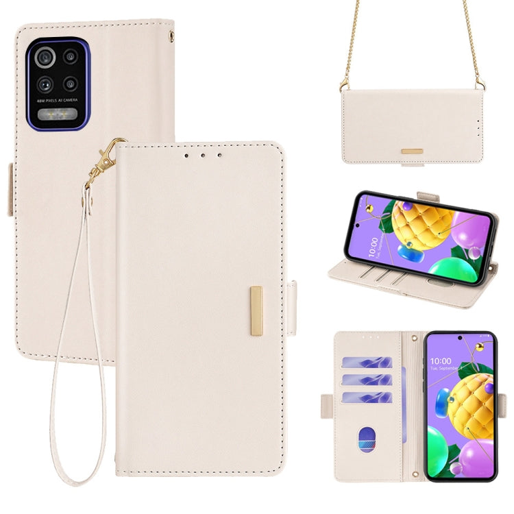 Funda de Cuero para LG K52 con Cadena Cruzada para Teléfono (Blanco)