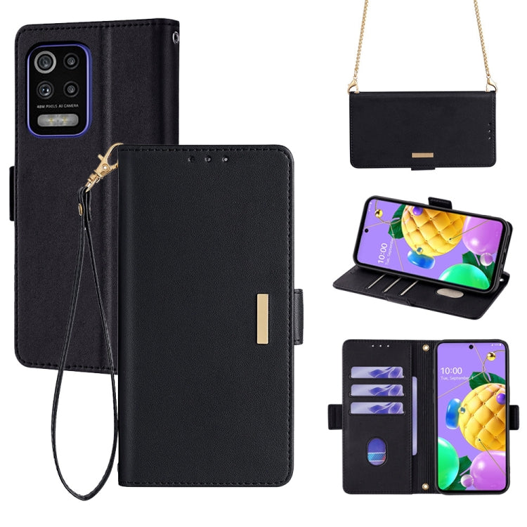 Funda de Cuero para LG K52 con Cadena Cruzada para Teléfono (Negro)