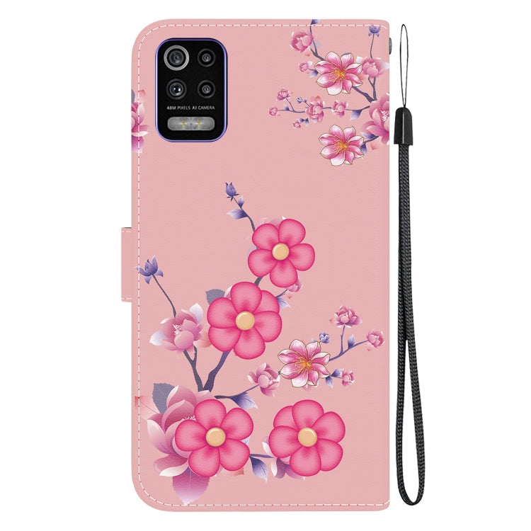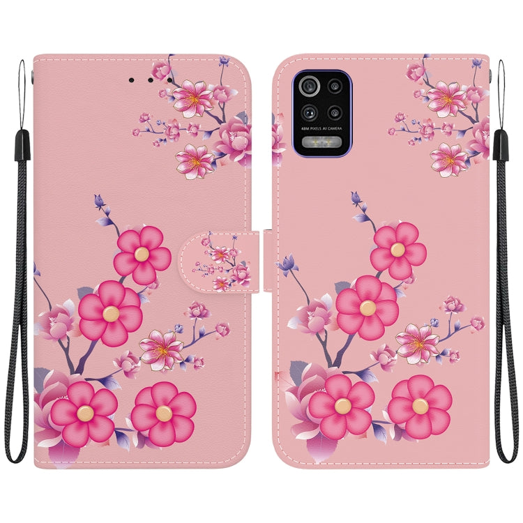 Estuche de Cuero para LG K52 K62 Q52 con Dibujo Coloreado y Textura de Cristal (Flores de Cerezo)