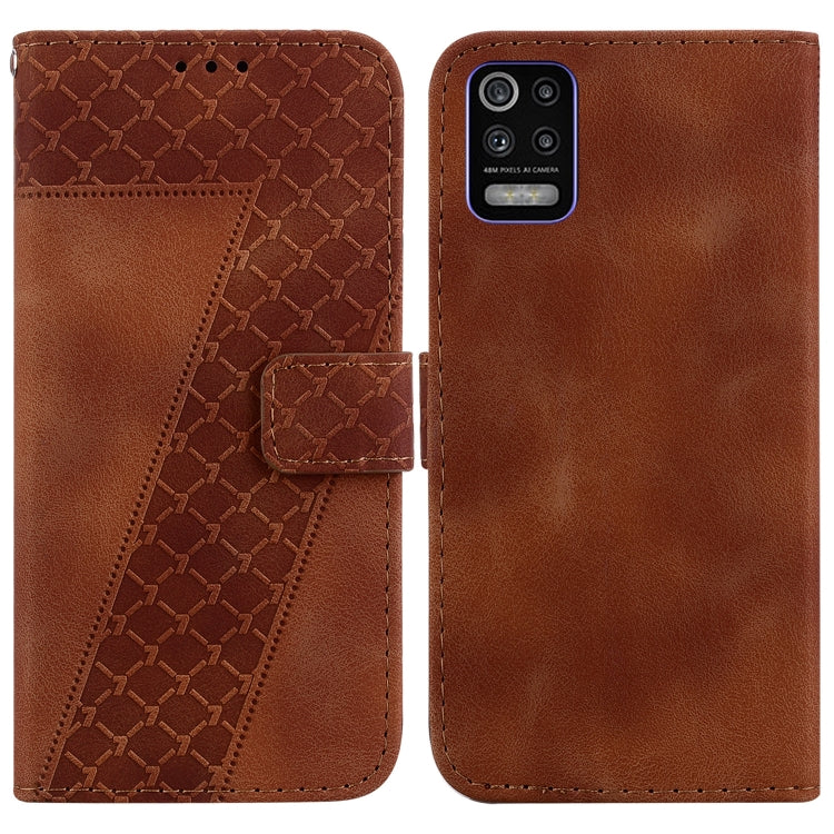 Funda de Cuero En Relieve en Forma de 7 para LG K52 / K62 / Q52 (Marrón)