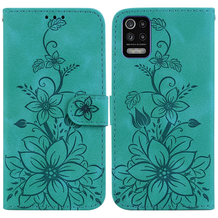 Funda para Teléfono LG K52 / K62 / Q52 Cuero con Relieve Lily (Verde)