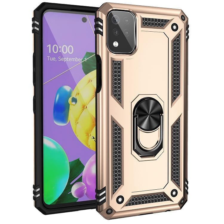 Funda Protectora TPU + PC para LG K53 con Soporte Giratorio 360 Grados (Oro)
