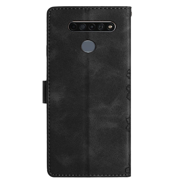Funda para teléfono LG K61 Cherry Blossom Butterfly Skin Feel de PU en relieve (Negro)