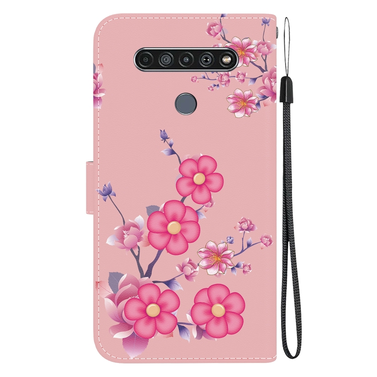 Estuche de Cuero para LG K61 con Dibujo Coloreado y Textura de Cristal (Flores de Cerezo)