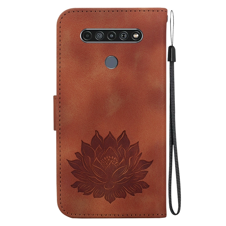 Funda de Cuero para LG K61 con Relieve de Loto (Marrón)