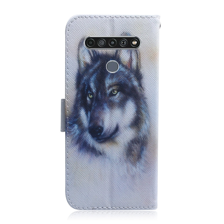Funda de Cuero para LG K61 con Tapa Horizontal, Dibujo a Color, Soporte, Ranuras para Tarjetas y Billetera (White Wolf)