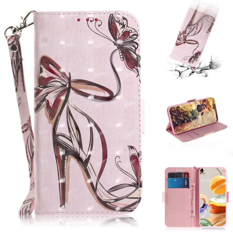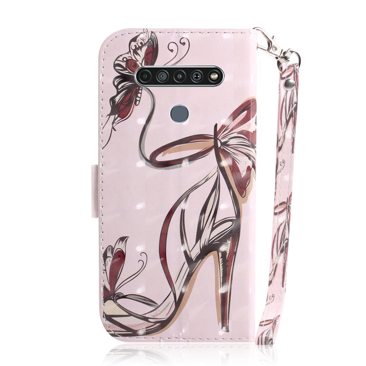 Funda de Cuero para LG K61 con Tapa Horizontal, Dibujo 3D, Soporte, Ranuras y Cordón (Mariposa)