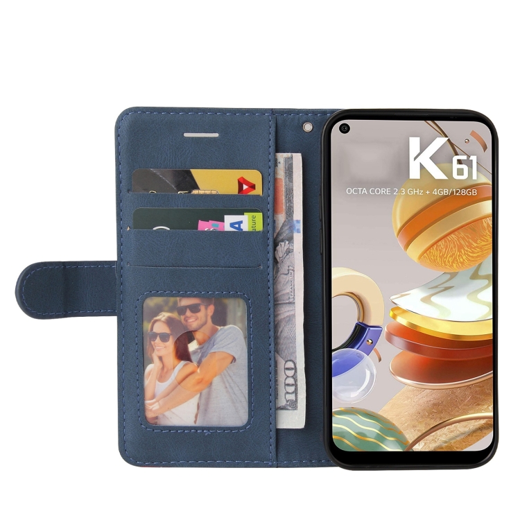 Funda de Cuero Horizontal Flip Pu para LG K61 con Soporte y Ranuras para Tarjetas (Azul)