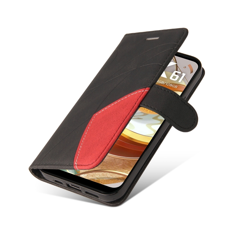 Funda de Cuero Horizontal para LG K61 con Soporte y Ranuras para Tarjetas (Negro)