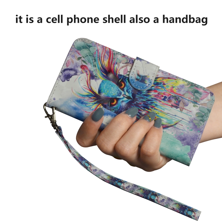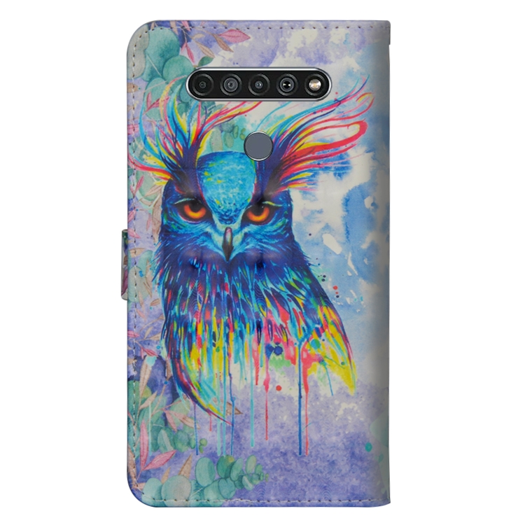 Funda para LG K61 TPU Flip Horizontal + Cuero PU con Soporte, Ranuras y Cordón (Búho de Acuarela)