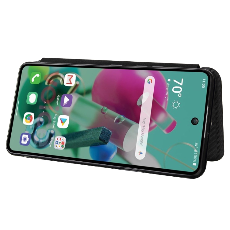 Funda para LG K92 5G Textura Fibra de Carbono Tapa Magnética Horizontal TPU PC PU Ranura Tarjeta (Negro)