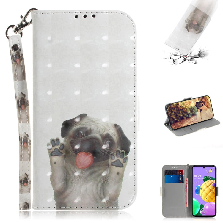 Funda de Cuero para LG Q52 con Tapa Horizontal, Soporte, Ranuras para Tarjetas y Cordón (Pug)