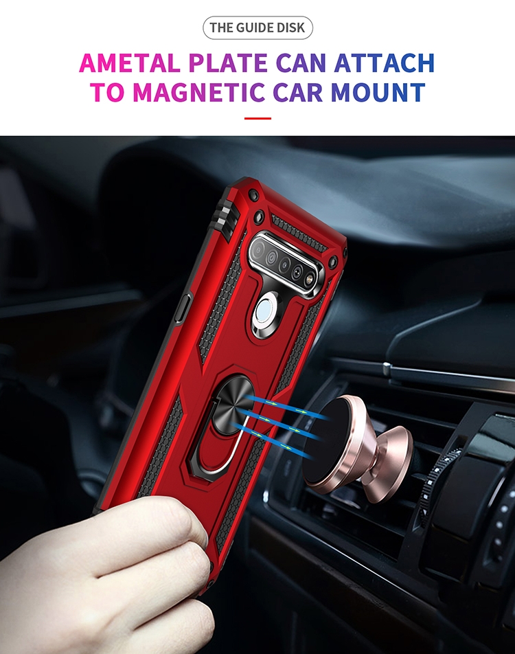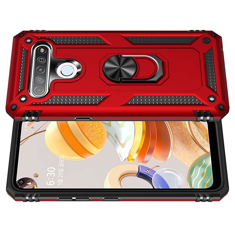 Funda Protectora TPU + PC para LG Q61 con Soporte Giratorio 360 Grados (Rojo)