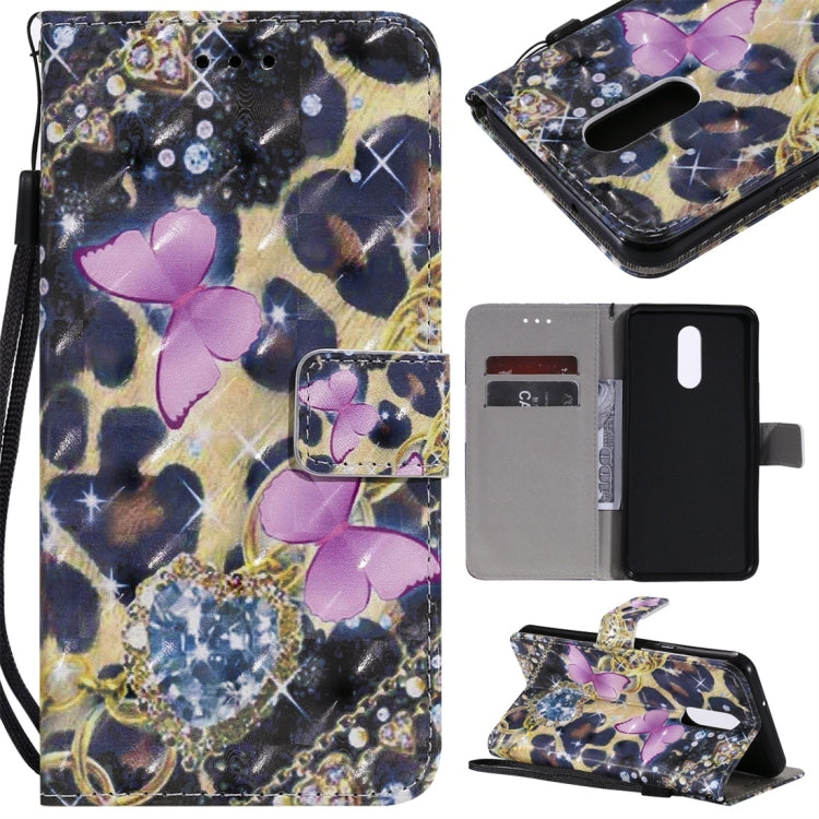 Funda de Cuero para LG Stylo 5 con Tapa Horizontal, Patrón 3D, Billetera, Soporte y Cordón (Mariposa Rosa)