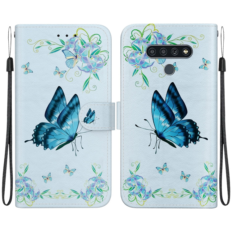 Estuche de Cuero para LG Stylo 6 / K71 con Dibujo Coloreado y Textura de Cristal (Azul)