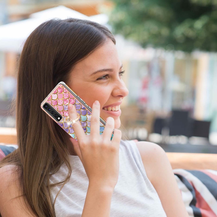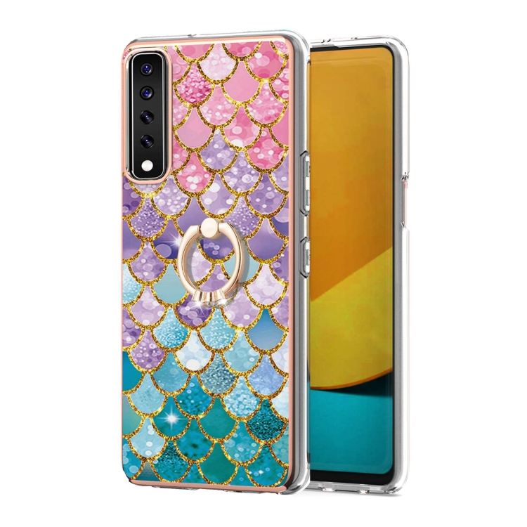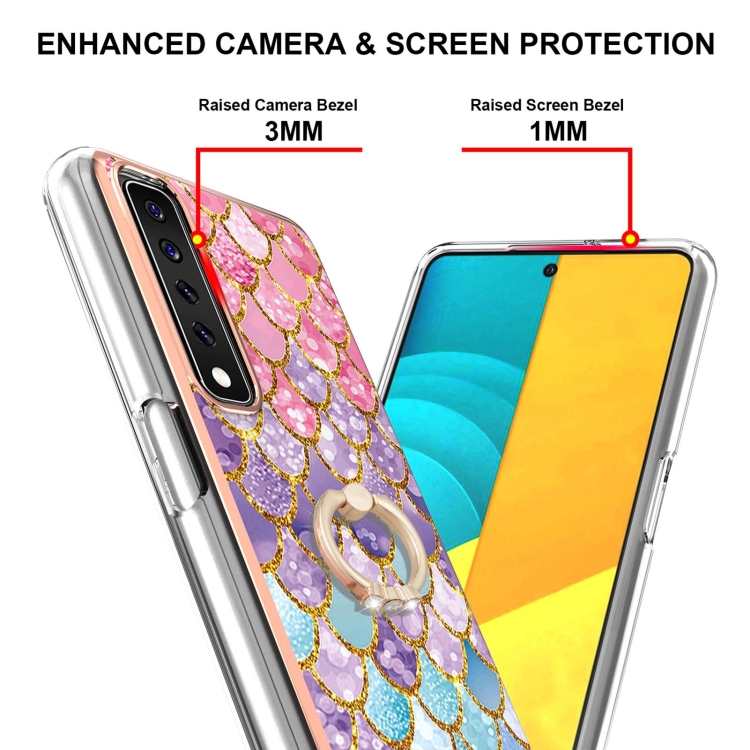 Funda TPU LG Stylo 7 4G con Patrón Galvanoplastia y Soporte de Anillo (Escamas Coloridas)