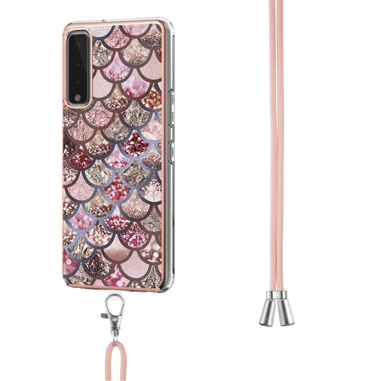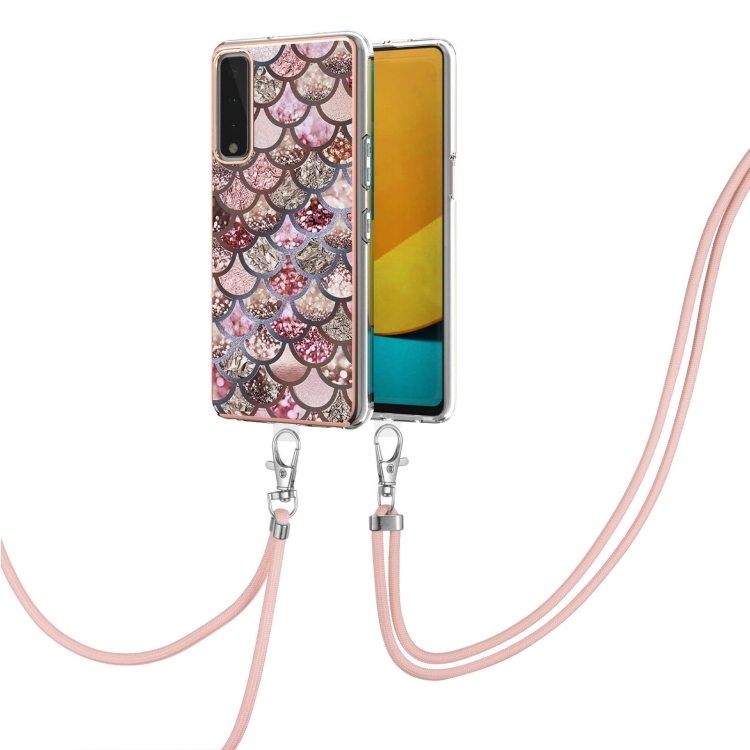 Funda TPU LG Stylo 7 5G a Prueba de Golpes con Cordón y Patrón Galvanoplastia (Escamas Rosas)