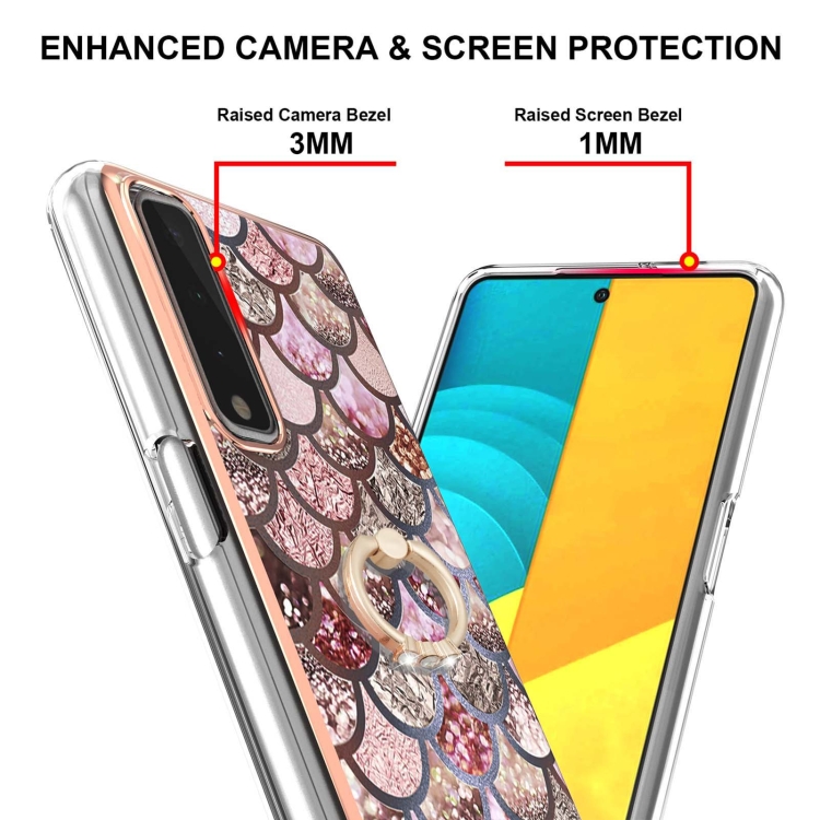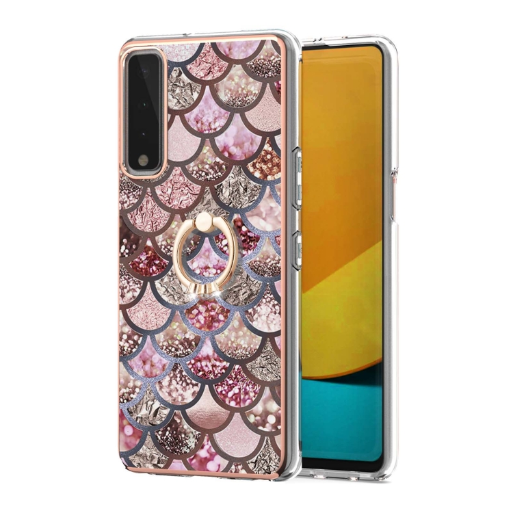 Funda TPU LG Stylo 7 5G con Patrón Galvanoplastia, Soporte Anillo y Protección (Escalas Rosadas)