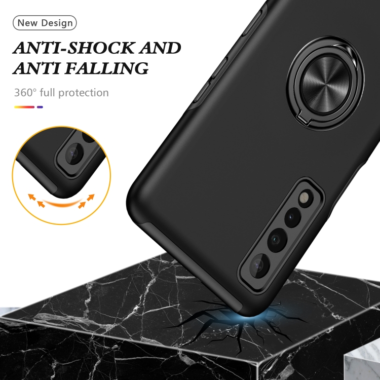 Funda Protectora Magnética para LG Stylo 7 5G PC + TPU a Prueba de Golpes con Titular de Anillo Invisible (Negro)