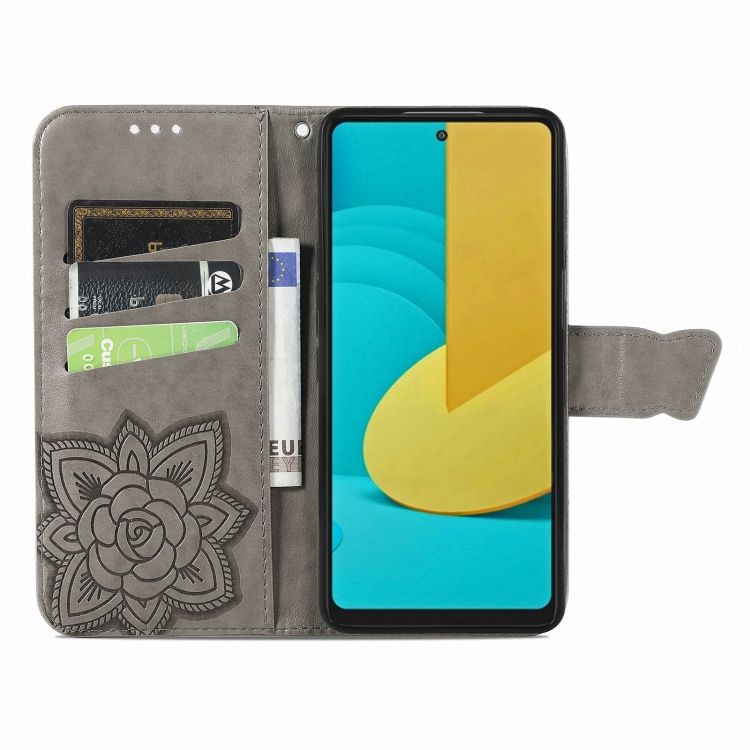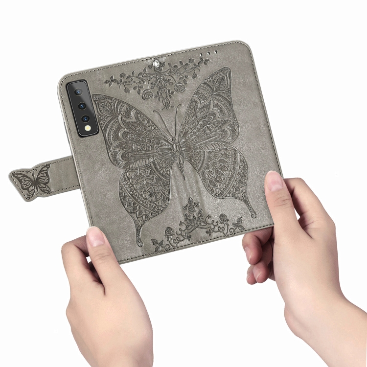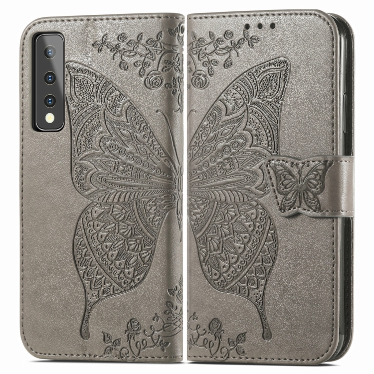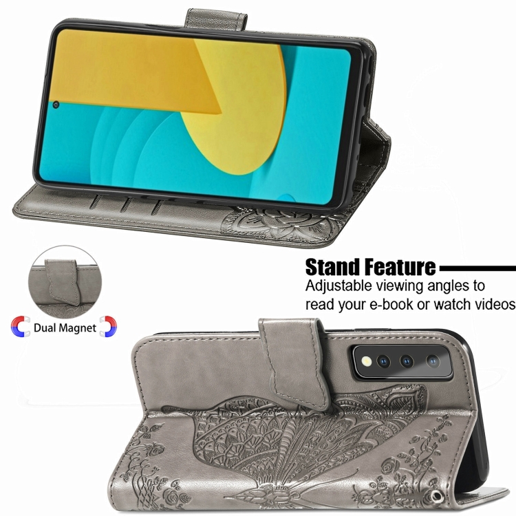Funda de Cuero Horizontal para LG Stylo 7 Butterfly Love Flowe con Soporte, Tarjeta, Wallet y Lanyard (Gray)