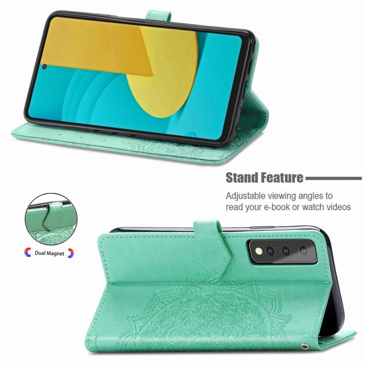 Funda de Cuero Mandala Flower para LG Stylo 7 Horizontal con Corchete y Ranura para Tarjeta (Verde)