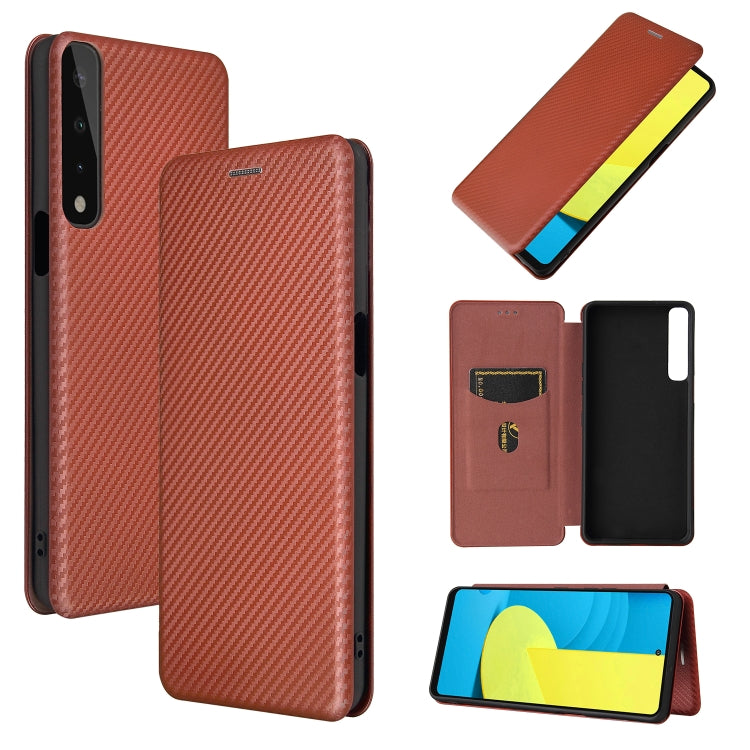 Funda para LG Stylo 7 Textura Fibra de Carbono Magnético Horizontal Flip TPU + PC Cuero PU con Ranura (Marrón)