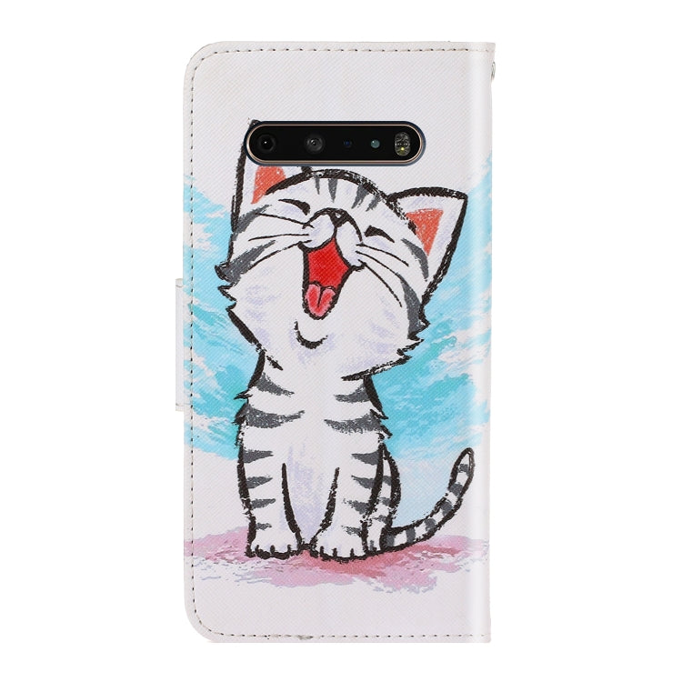 Estuche de Cuero Abatible Horizontal para LG V60 con Soporte, Ranura para Tarjeta y Billetera (Gato de Boca Roja)