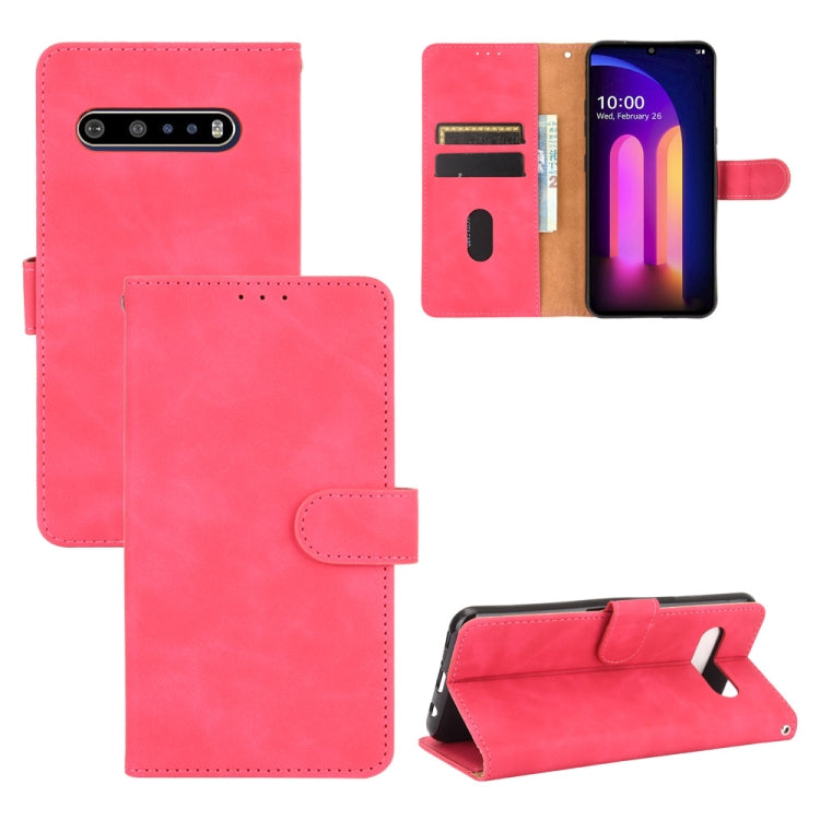 Funda de Cuero para LG V60 Thinq 5G con Hebilla Magnética, Soporte y Ranuras (Rosa Roja)