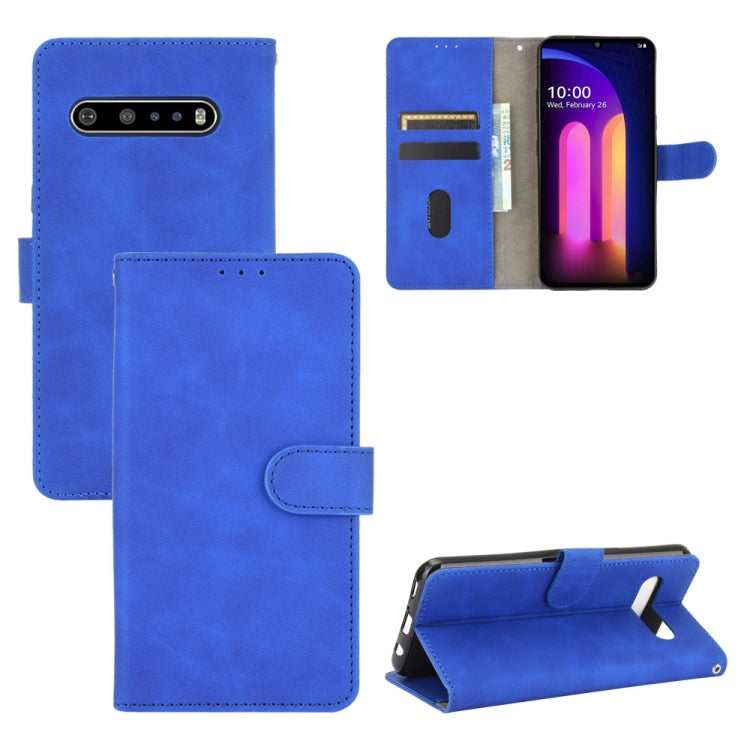 Funda Cuero PU LG V60 Thinq 5G Abatible Horizontal con Soporte y Billetera (Azul)