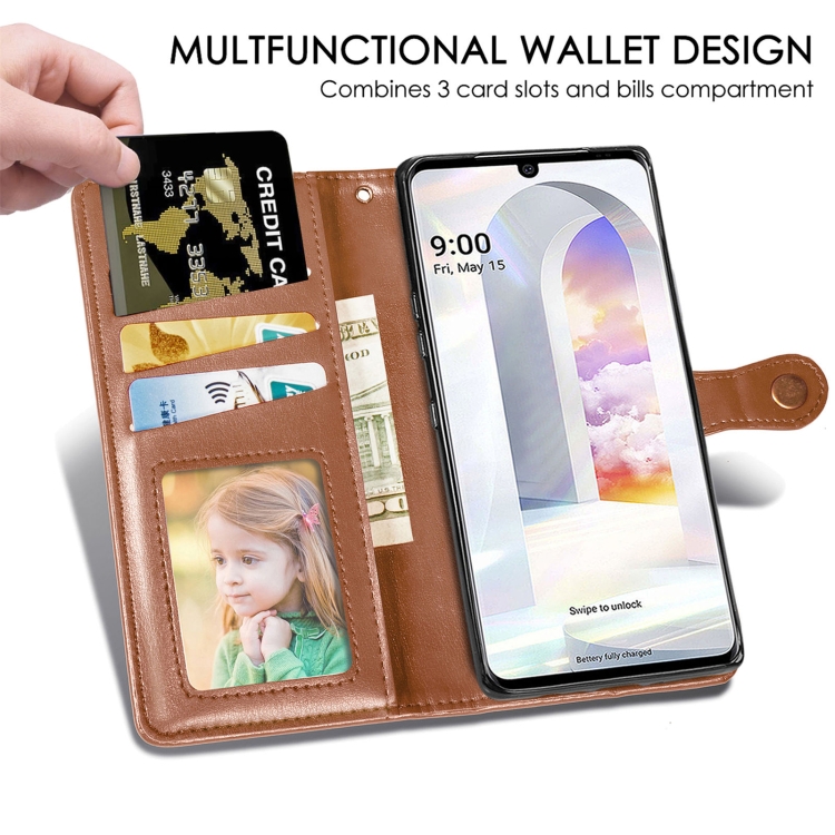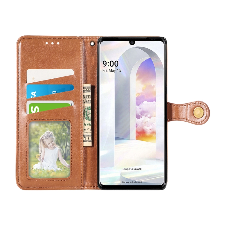 Caja de Cuero para LG Velvet 2 Pro con Hebilla, Lanyard, Marco de Foto, Ranura para Tarjeta, Billetera y Soporte (Brown)