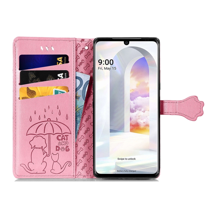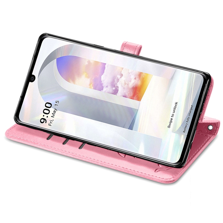 Funda de Cuero LG Velvet 2 Pro con Soporte, Tragamonedas, Billetera y Cordón (Rosa)