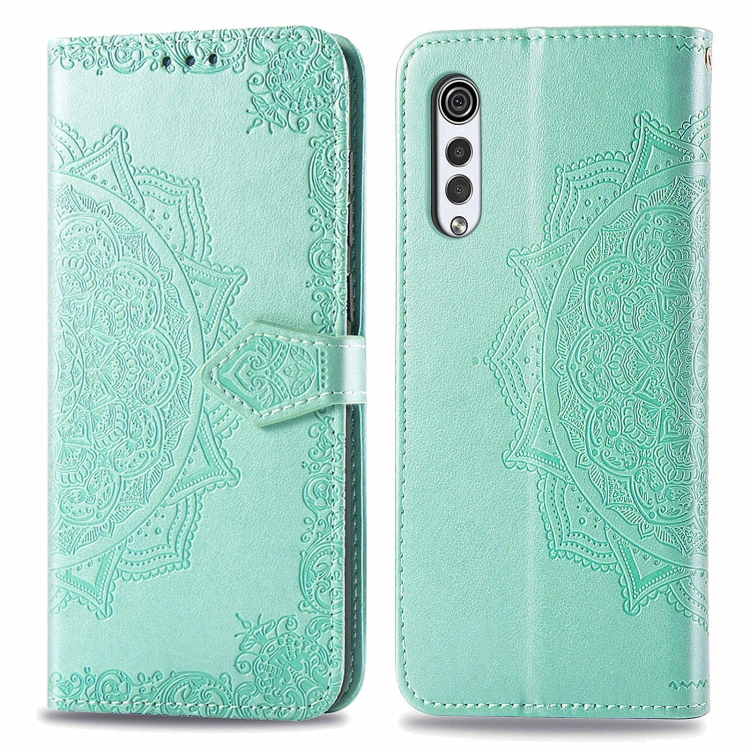 Funda de Cuero LG Velvet 2 Pro Mandala Estampado en Relieve con Soporte, Ranuras y Cordón (Verde)