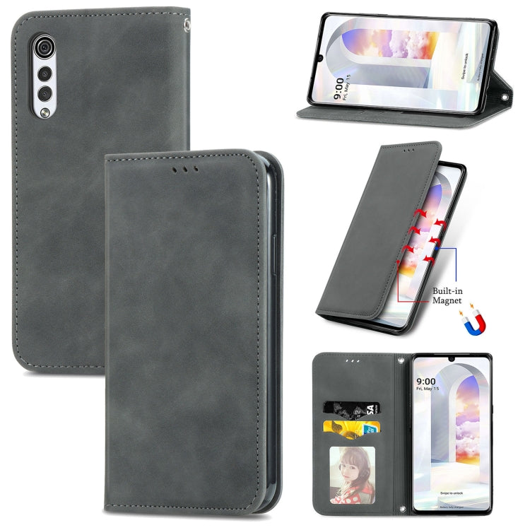 Funda de Cuero para LG Velvet 2 Pro Flip Horizontal Magnética con Soporte y Ranuras para Tarjetas (Gris)