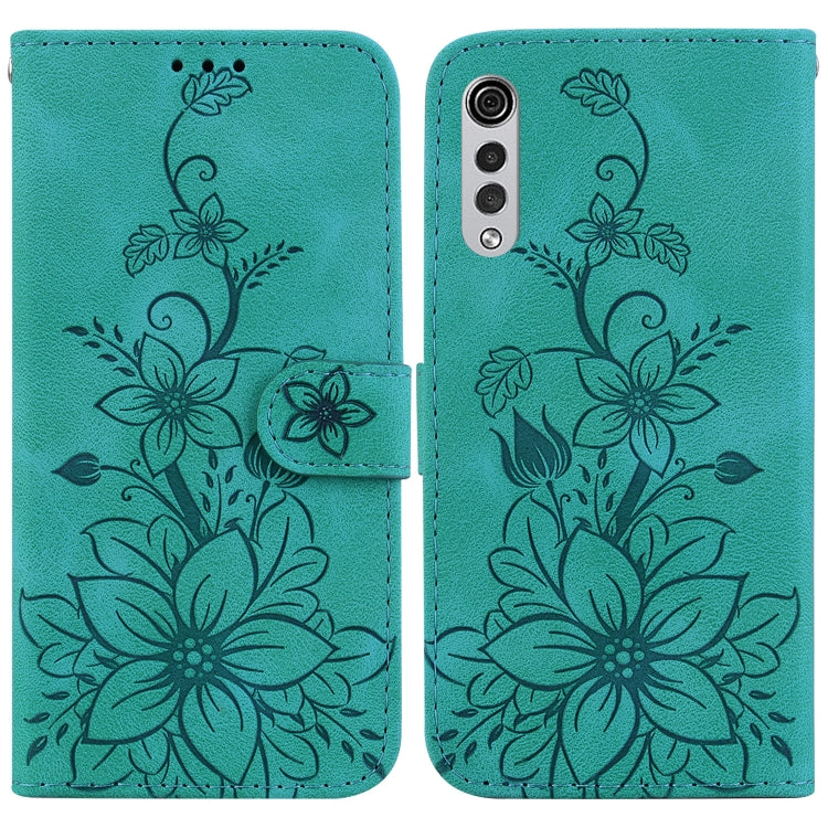Funda de Cuero con Relieve Lily para LG Velvet 4G / 5G / G9 (Verde)