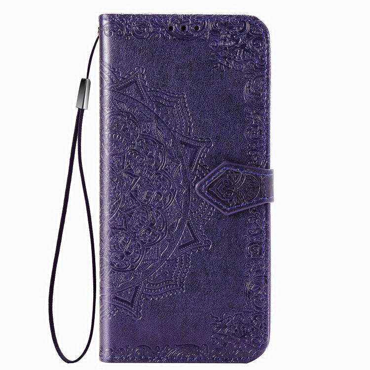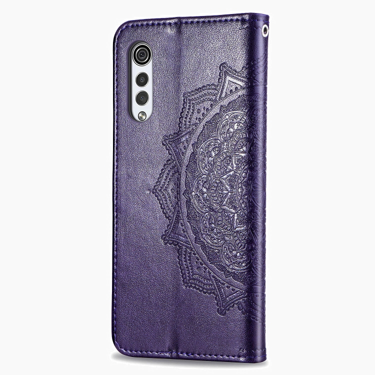 Funda de Cuero LG Velvet 5G Mandala Flower con Tapa Horizontal, Soporte, Ranura para Tarjeta y Cordón (Púrpura)