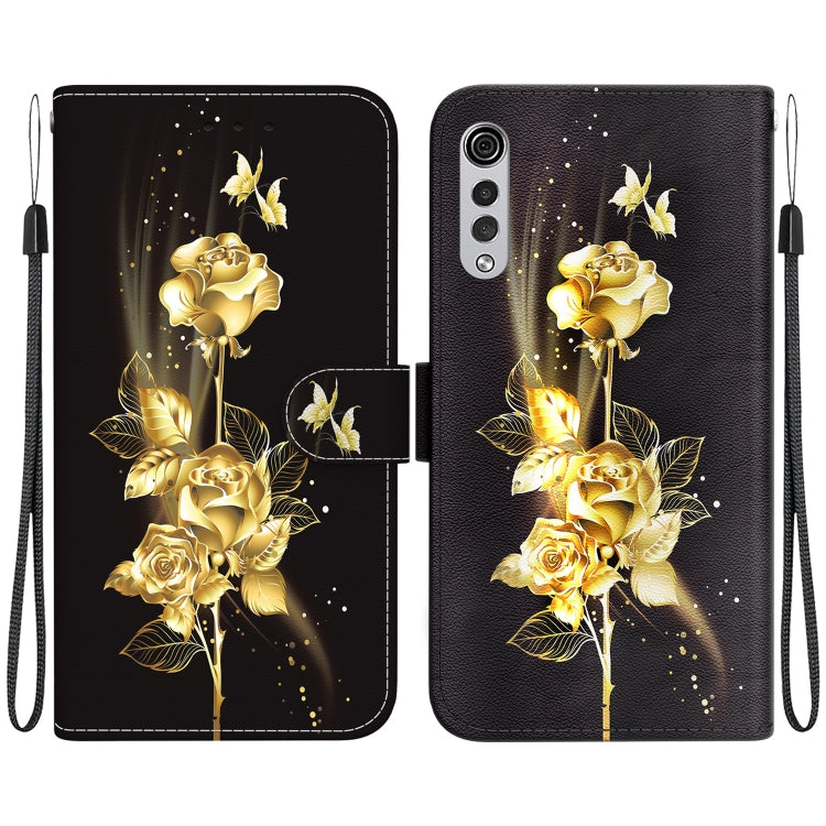 Estuche de Cuero para LG Velvet G9 con Dibujo Coloreado y Textura de Cristal (Mariposa Dorada Rosa)